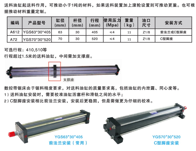 前法蘭安裝夾緊/送料油缸