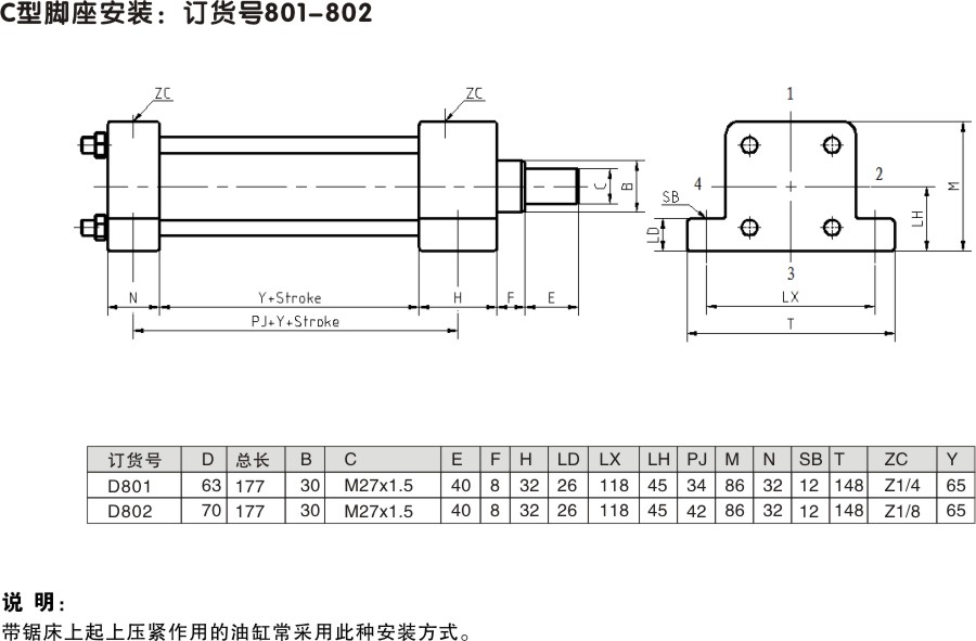 C型腳座送料油缸
