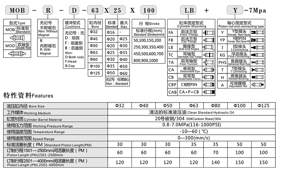 MOB輕型液壓缸型號(hào)說(shuō)明
