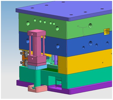 定模抽芯用油缸驅(qū)動(dòng),大大簡化模具結(jié)構(gòu),降低成本;但需注意動(dòng)作順序的控制和滑塊鎖緊,以免動(dòng)作錯(cuò)亂損壞模具或油缸鎖緊力不足而無法封膠,抽芯力不足而抽不動(dòng)滑塊。